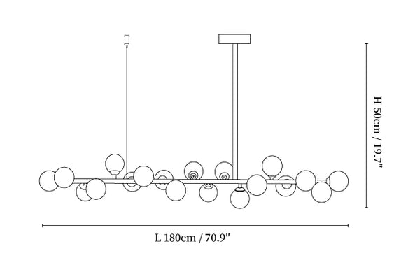 The Linear Balls Chandelier, designed , features a unique combination of coated metal and white glass spheres. With its original design and quality materials, this chandelier is sure to elevate any space with a touch of elegance and sophistication.