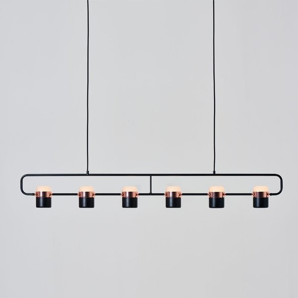 The Ling P1 LED Pendant is inspired by early metal fences in Taiwan surrounding balconies and windows. The metal structure is reminiscent of art deco design through the geometric shape. The shade, constructed from frosted glass and steel, can be adjusted through a left and right tilt for you to position the beam of light wherever desired. but can still be rotated whichever side you prefer. The H variation is a wider framed structure and the V is the narrower structure. All look great in a cluster with combinations of each version from the family. Available in either: white with brass elements, black with brass elements or black with copper elements. In our professional opinion, Ling would look best as an individual or pair in a bedroom or kitchen area highlighting a particular spot of interest. LED lamp included.