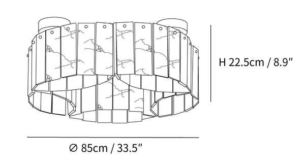 Size: Dia 85cm x H 22.5cm / ∅ 33.5″ x H 8.9″ (G9 Bulbs*16)