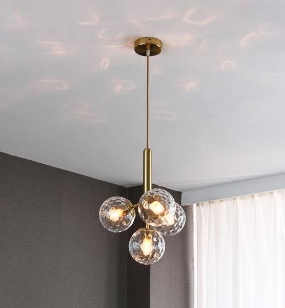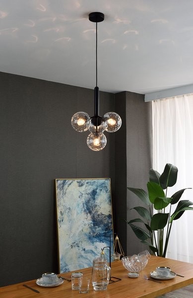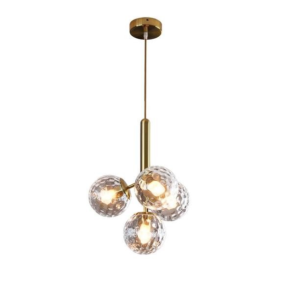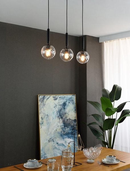 Comprising four mouth-blown glass spheres and a stylish processed metal structure, the Miira 4 Pendant's design exudes balance and depth. The optic clear glass version, with its unique embossed pattern, brings a playful light and atmosphere to the room, while the opal glass version has an inherent sense of warmth. The Miira 4 Pendant Light comes with a coordinating ceiling plate and a fabric cable measuring 150 cm in length. Also available is the Miira 1 Pendant Light and the Miira Wall Lamp. Light source not included.