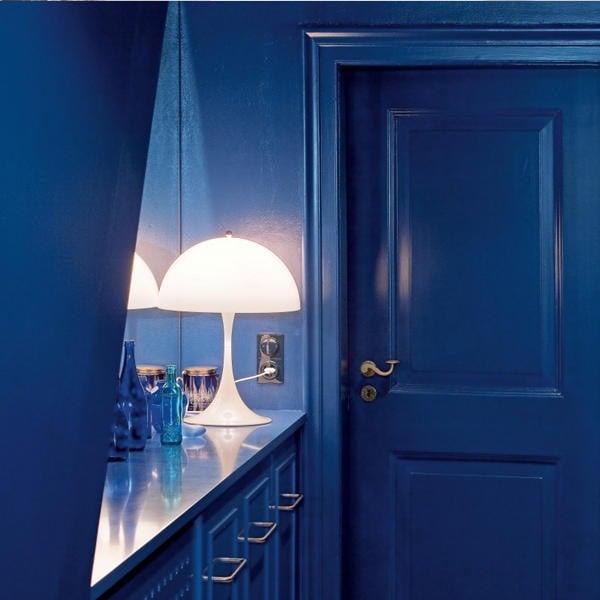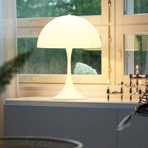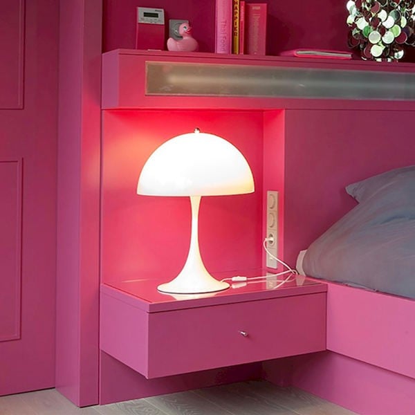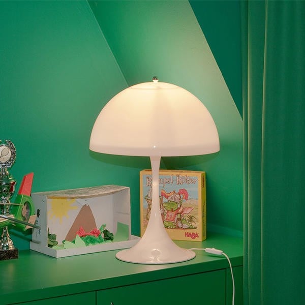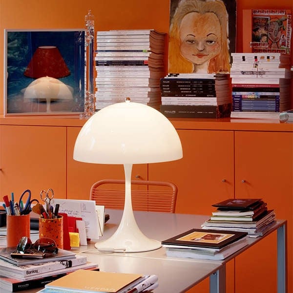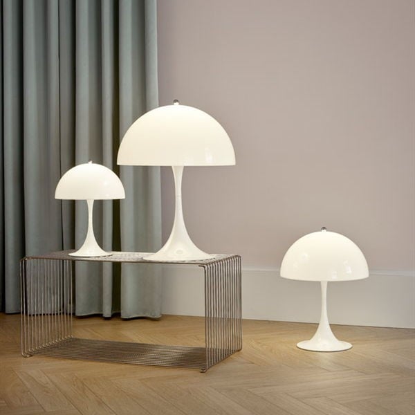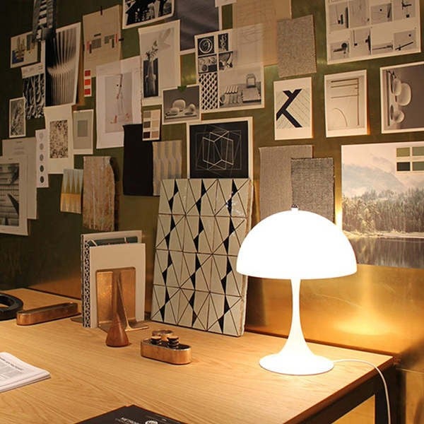 The Panthella 160 Portable Table Lamp consists of a domed acrylic shade and a streamlined aluminum base. Simple and stylish mushroom shape, suitable for any space. The cream table lamp adopts a hidden light source. The bulb is completely covered by the lampshade, providing soft and non-glare diffused light.