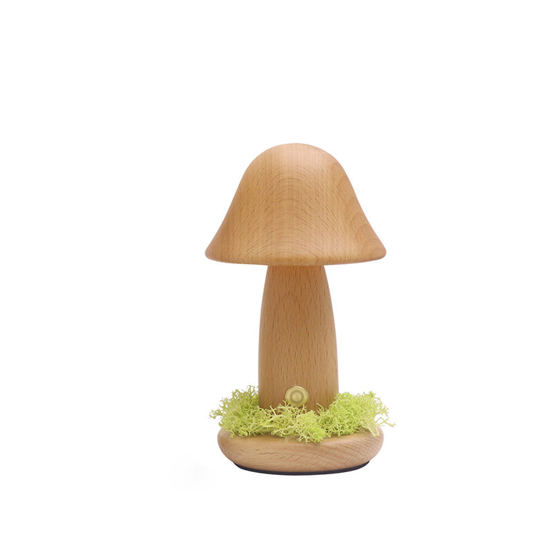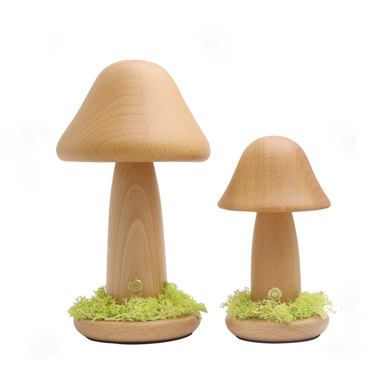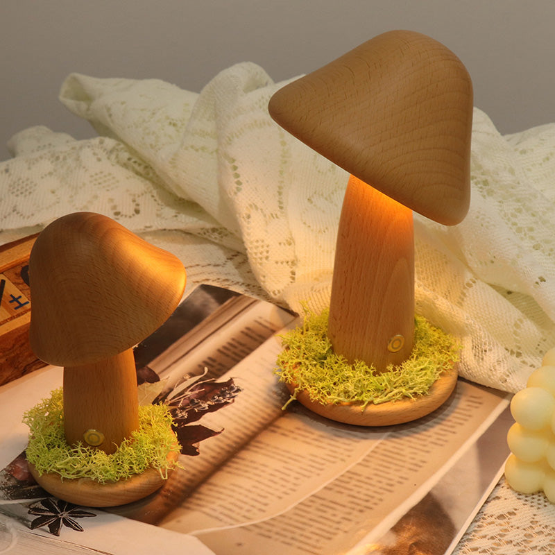 Modern Art Deco Mushroom Round Solid Wood LED Table Lamp For Bedroom