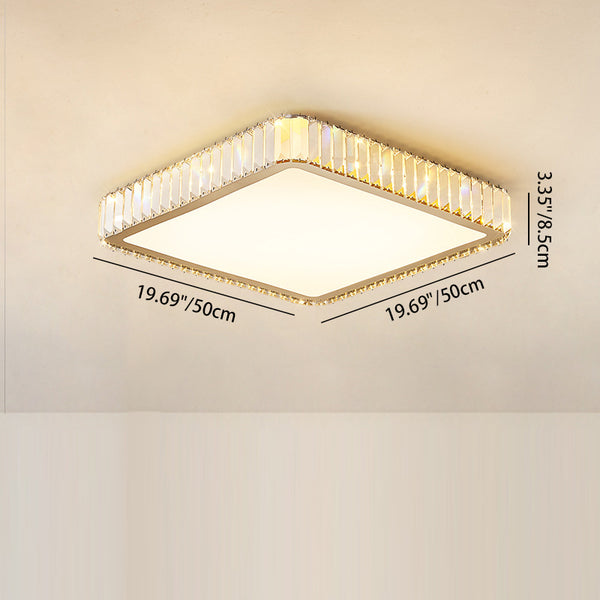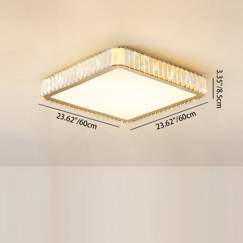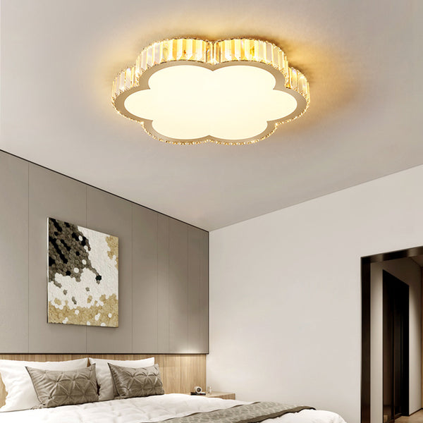 Modern Luxury Square Flower Crystal Stainless Steel LED Flush Mount Ceiling Light For Bedroom