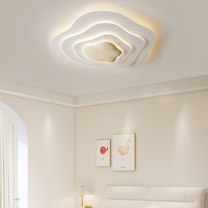 Modern Minimalist Cream Cloud Resin Iron LED Flush Mount Ceiling Light For Bedroom
