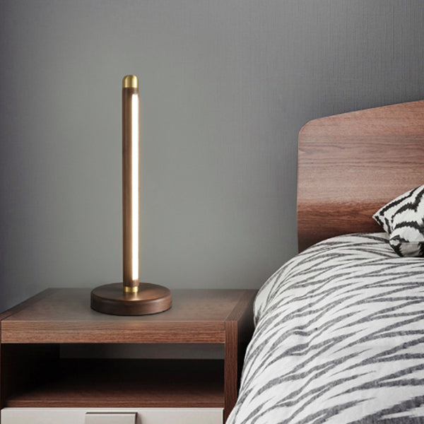 Modern Minimalist Linear Wood Copper Acrylic LED Table Lamp For Bedroom