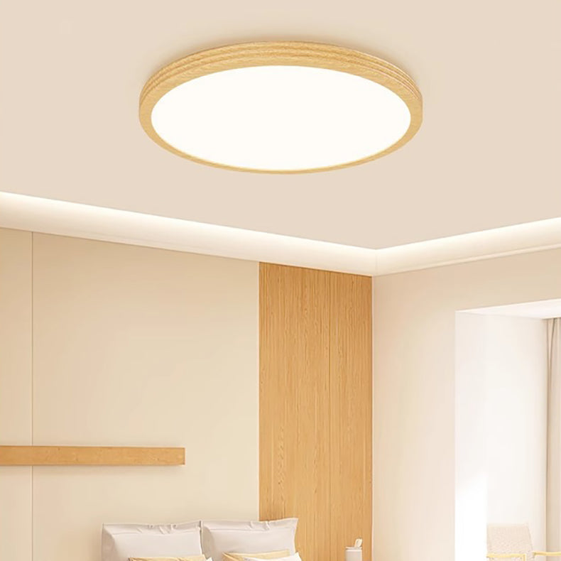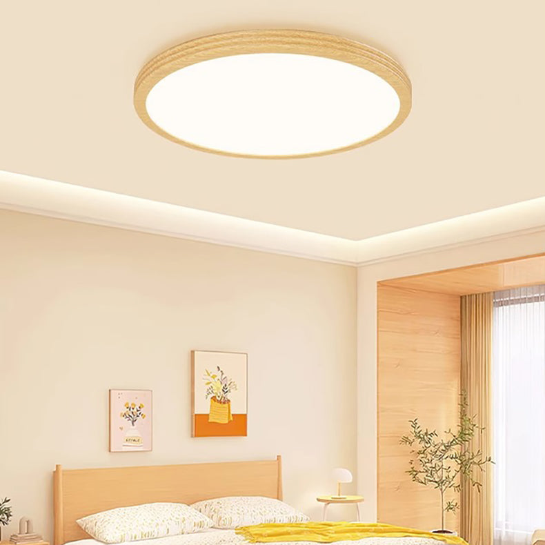 Modern Minimalist Multi-Layer Round Original Wood Grain Iron Aluminum Acrylic LED Flush Mount Ceiling Light For Bedroom