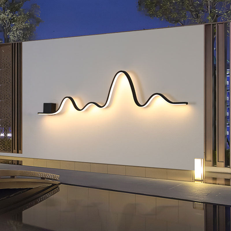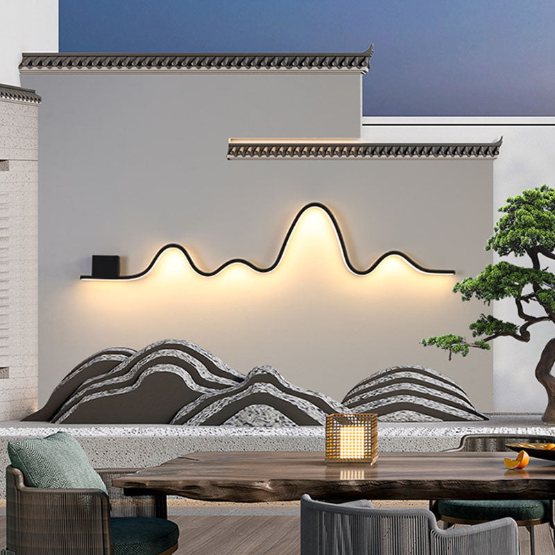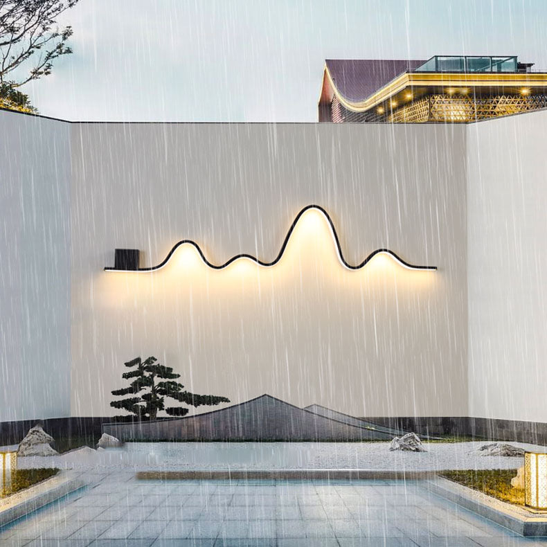 Modern Minimalist Solar Waterproof Strip Mountain Iron Aluminium Silica LED Wall Sconce Lamp For Outdoor Patio