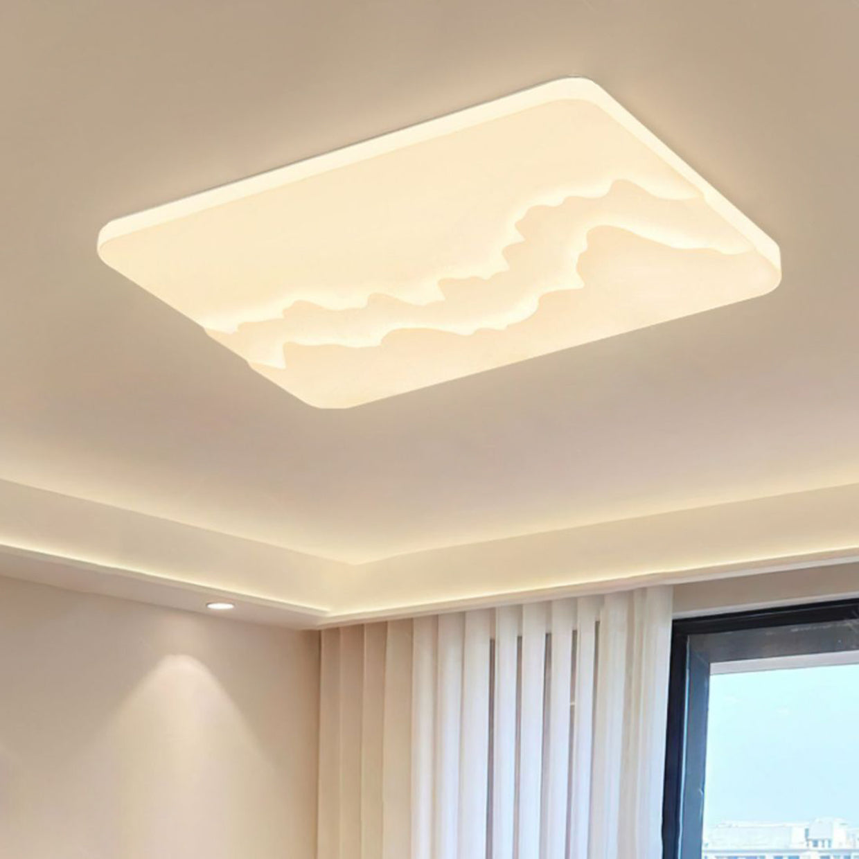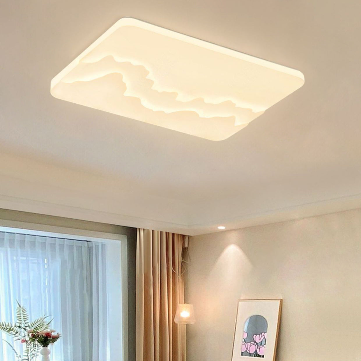 Modern Minimalist Wave Round Square Rectangle Acrylic LED Flush Mount Ceiling Light For Bedroom