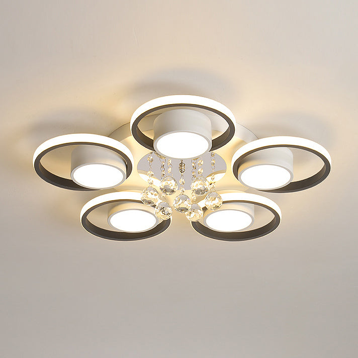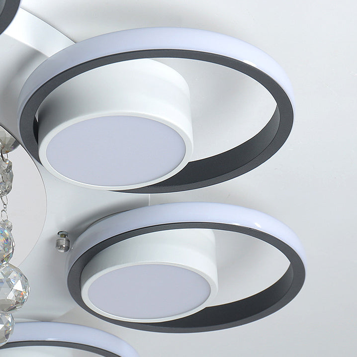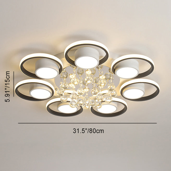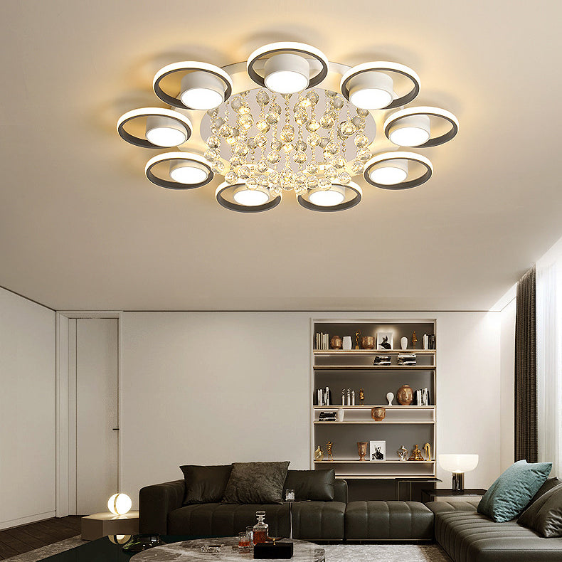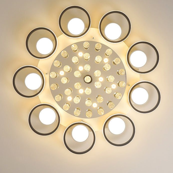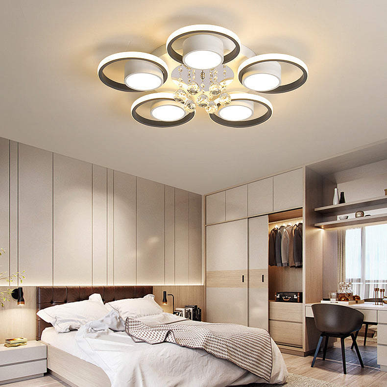 Modern Simplicity Acrylic Circle Ring Shade Iron Crystal LED Flush Mount Ceiling Light For Living Room