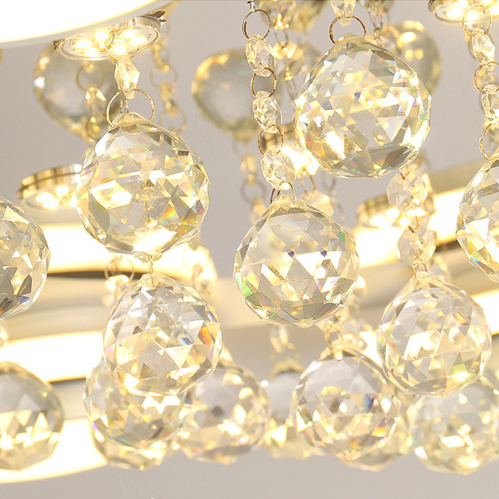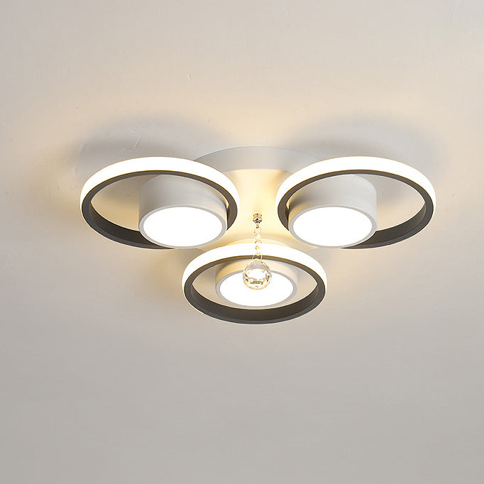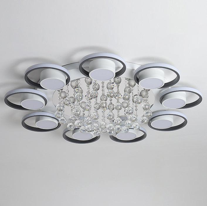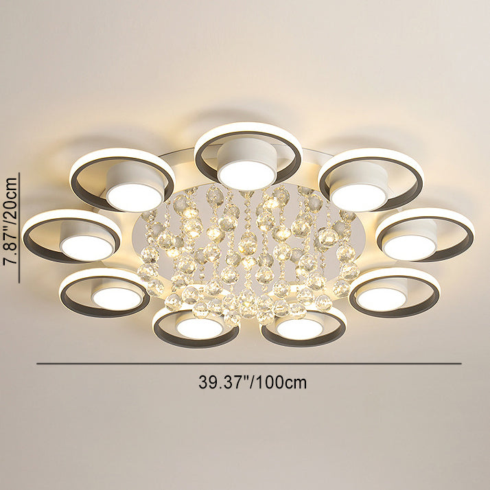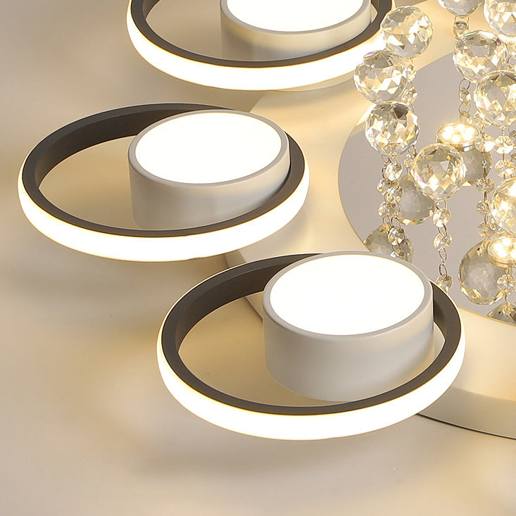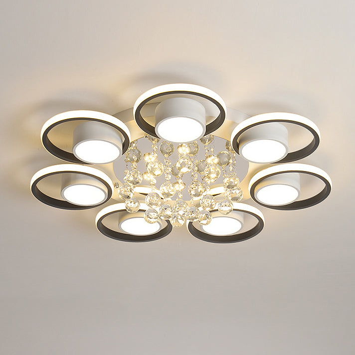 Modern Simplicity Acrylic Circle Ring Shade Iron Crystal LED Flush Mount Ceiling Light For Living Room