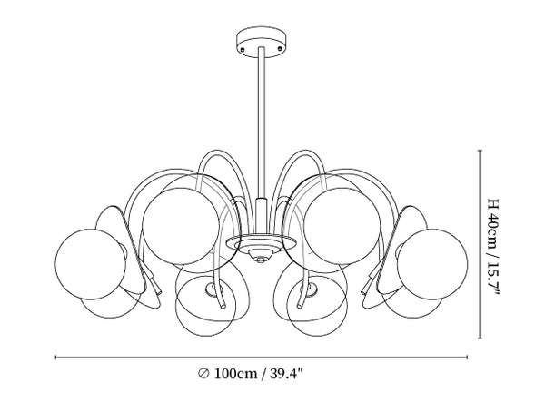 8 Heads Size: Dia 100cm x H 40cm / ∅ 39.4″ x H 15.7″