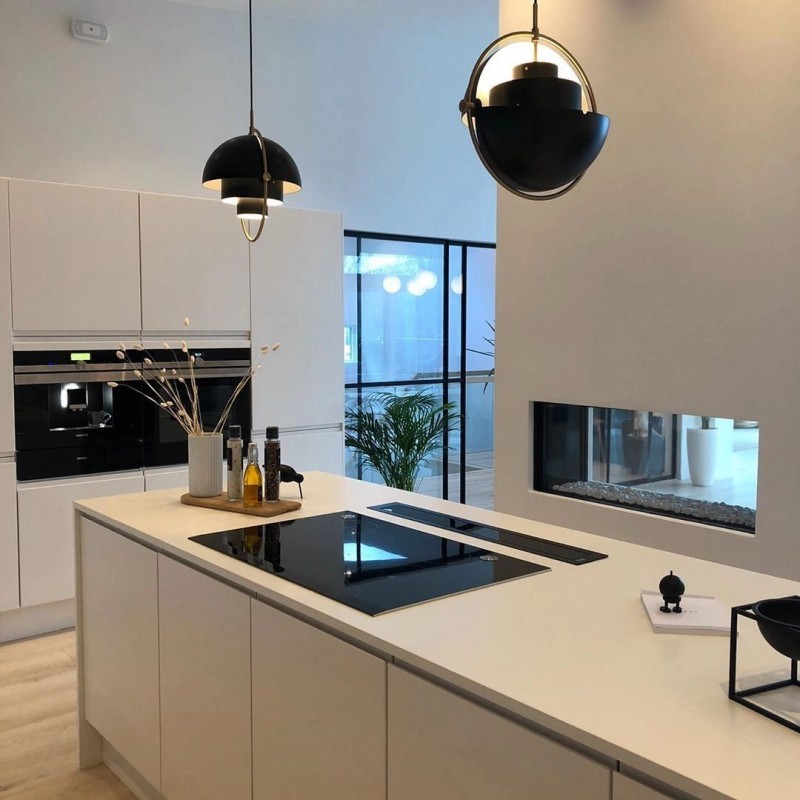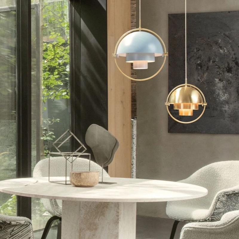 The Multi Lite Pendant Light by we is a design by the Danish designer Weisdorf from 1972. The design is characterised by the exceptional and playful lampshade that reflects Weisdorf’s passion for versatility: The base of the lamp consists of three basic shapes - two immovable cylinders and a hemisphere - framed by a thin ring. What makes it special? The hemisphere is divided into two parts so that the two halves are mobile and invite you to play with shapes and light. Extraordinary Design By turning the halves of the shade, the Multi Lite Pendant Light will not only visually change, but the light that is diffused can also be determined. Turn both halves downwards and the light will illuminate the ceiling and create a cosy atmosphere. By positioning the halves upwards, downward light is generated which, for example, illuminates the dining table. If the halves are moved opposite one another, the light is indirectly dispersed and the lampshade looks like a sculptural work of art.