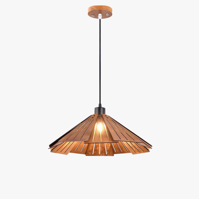 - Inspired by the delicate beauty of an upside-down lotus leaf, this pendant boasts a unique and eye-catching shape that serves as a conversation starter in any setting. The lotus leaf, skillfully crafted from well-cut wooden materials, introduces a harmonious blend of agility and classicism. Its graceful curvature and intricate detailing mimic the natural world, inviting a sense of serenity into your space. This distinctive shape adds a touch of artistry to your lighting, ensuring that it becomes a focal point and a symbol of refined taste in your home.