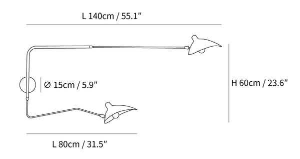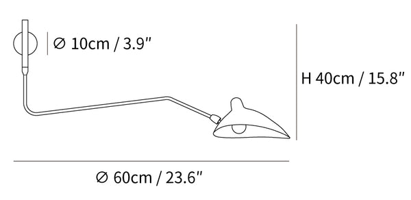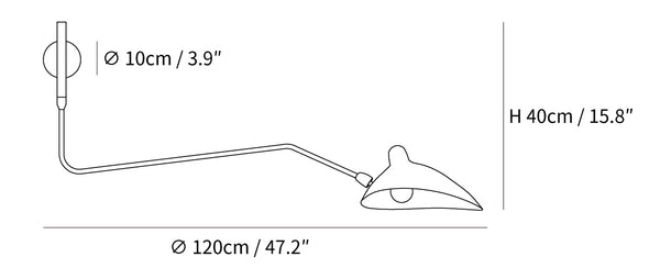 Mouille's insect-like designs from the 1950's were created as a reaction to heavier, clunkier Italian designs of the time. Mouille wanted to create modern lighting fixtures that had delicate lines and a stunning visual presence. The One-Arm wall sconce is one of Serge's most versatile lamps.