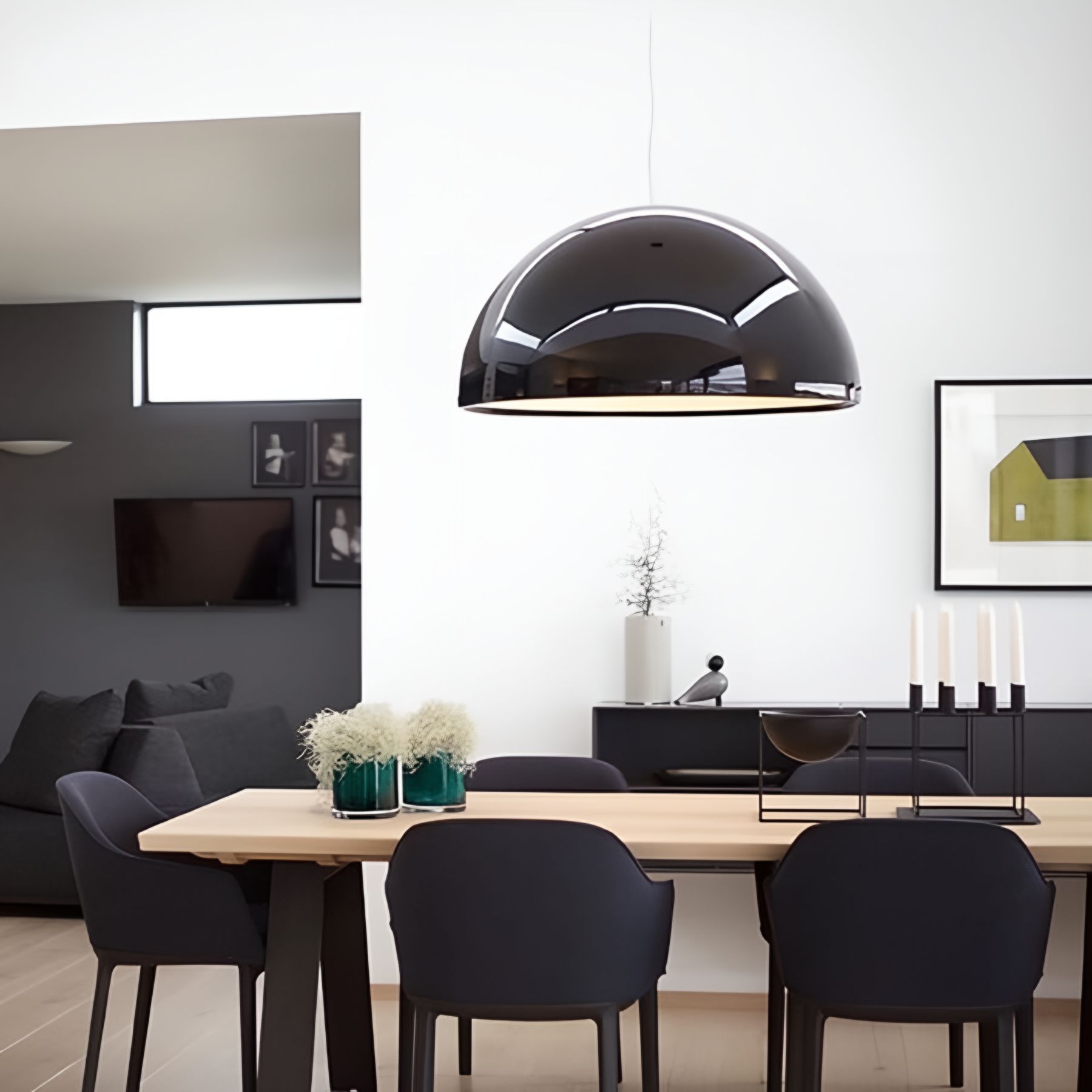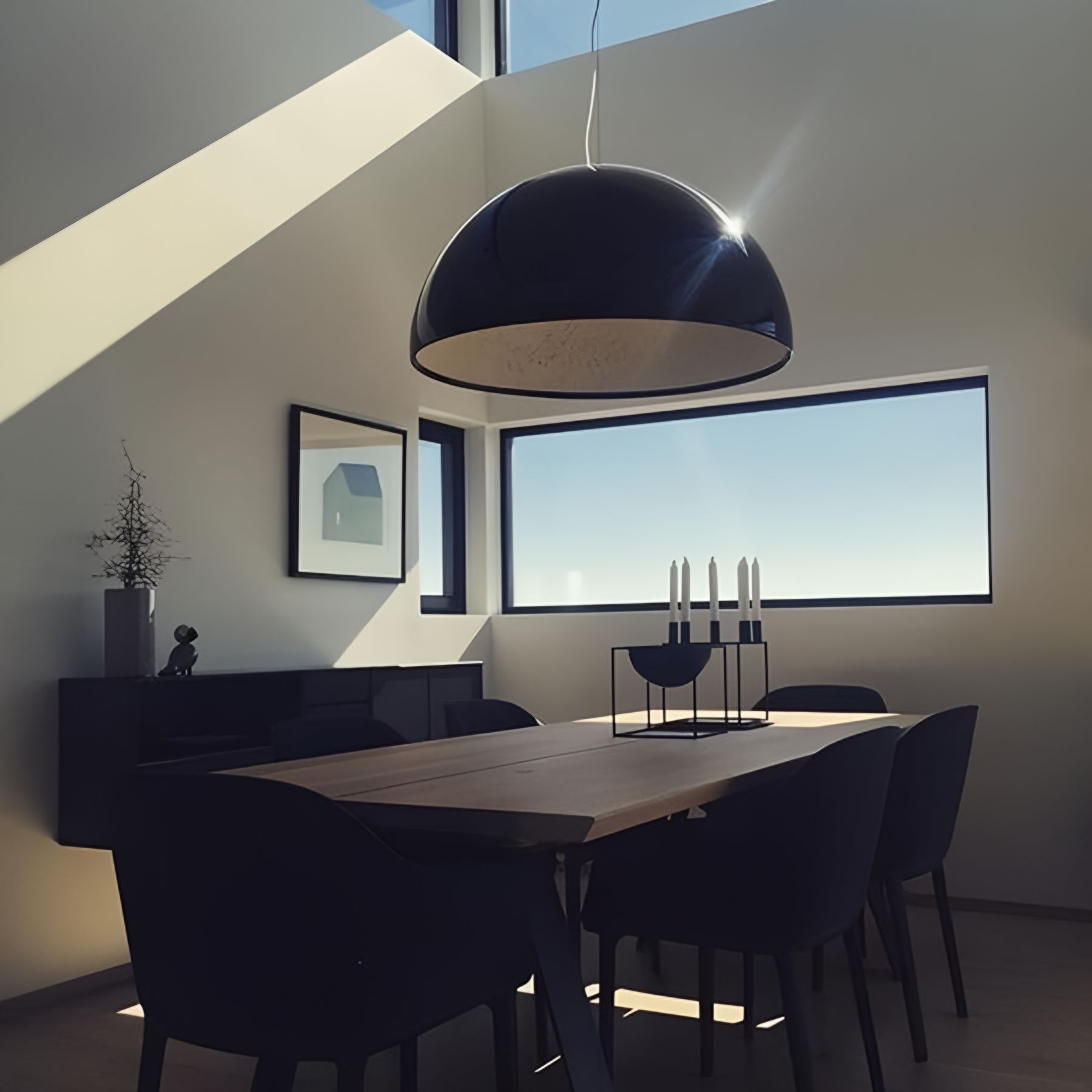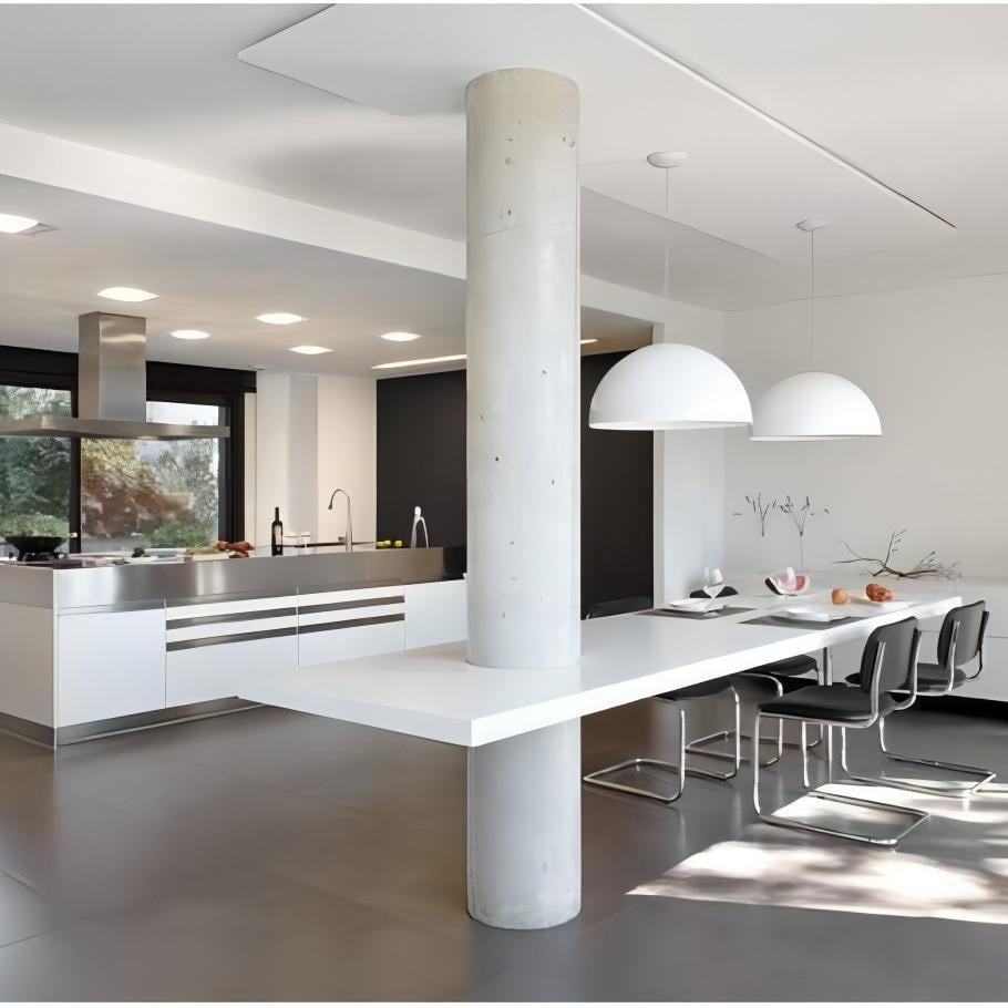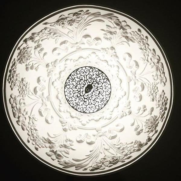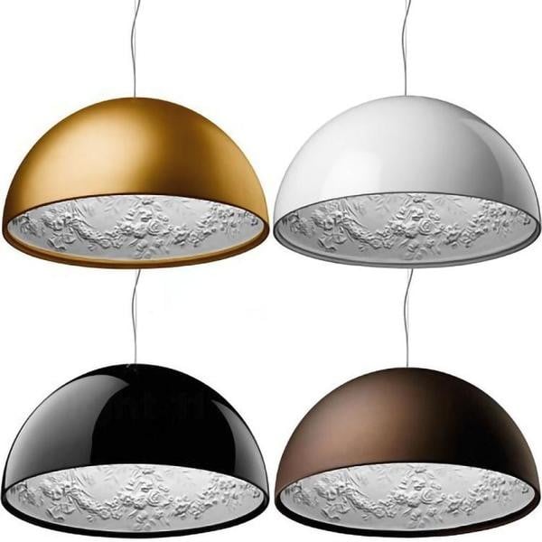 The Skygarden Decoration Pendant Light is an elegantly suspended hemisphere that impresses with its sheer size. However, it is the inner diffuser, which is coated in white plaster, that steals the show. Standing beneath it, you’ll see the intricate design that gives the piece its name.