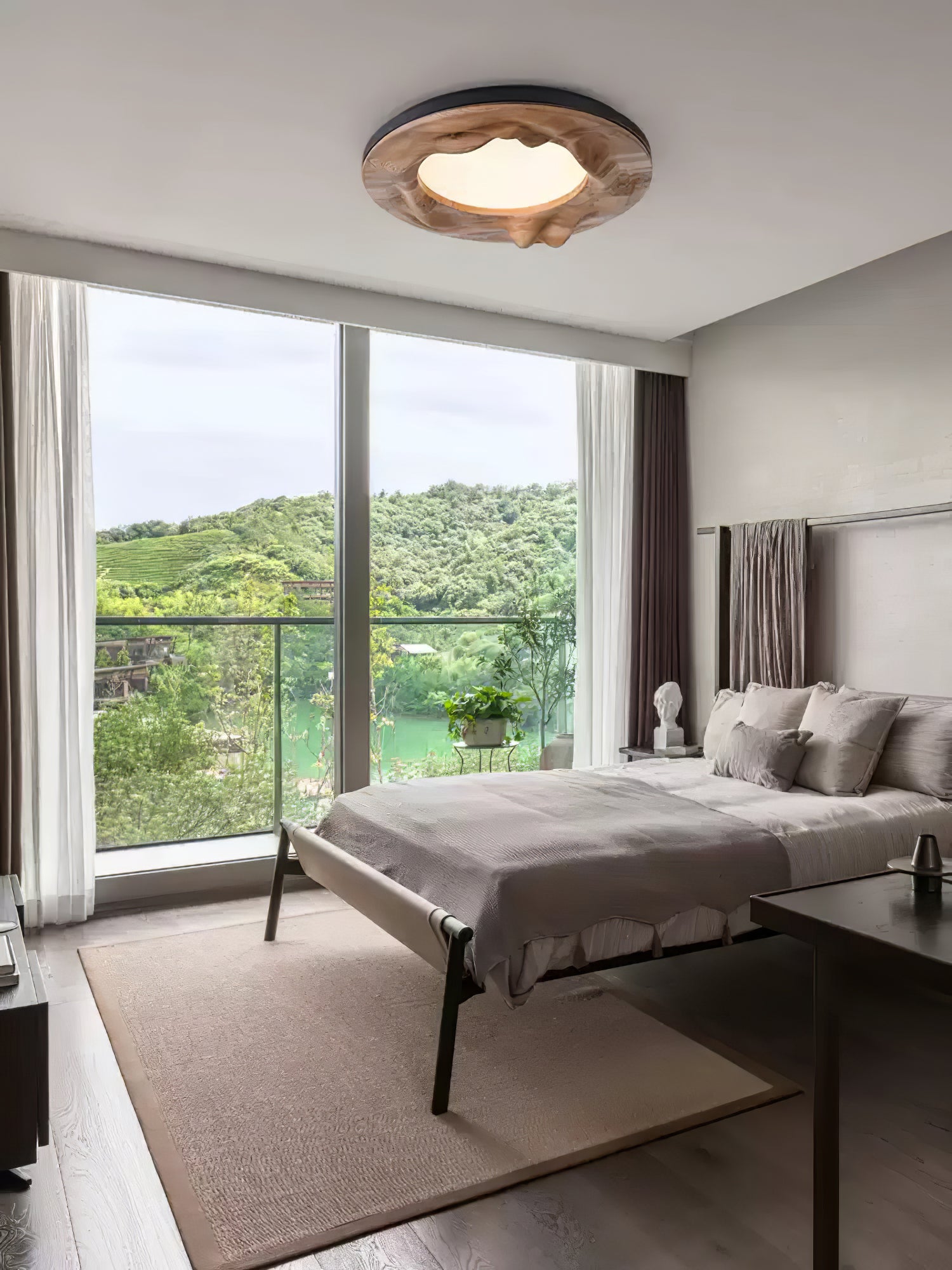 The Sky Lake Ceiling Lamp evokes the serene beauty of a tranquil lake reflecting the sky above. Its organic, circular design features a smooth wooden frame with soft, flowing contours that mimic the natural shape of water ripples. The central light glows gently, casting a warm and calming ambiance across the room, perfect for creating a peaceful atmosphere in living rooms, bedrooms, or dining areas. With its blend of natural wood textures and minimalist design, the Sky Lake Ceiling Lamp brings a sense of calm and harmony to any space, making it an ideal choice for those who appreciate the tranquility of nature in their home decor.