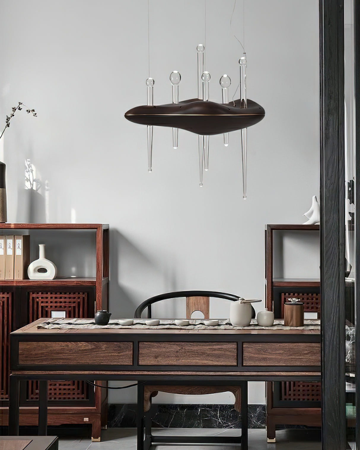 Unveil the striking beauty of the Skyward Thorn Chandelier, a lighting piece that transcends traditional design. Inspired by the sharp elegance of thorns reaching towards the sky, this chandelier combines natural wood with sleek glass accents to create a captivating visual experience. The interplay of the wooden base with the suspended glass elements evokes a sense of movement and growth, making it a centerpiece that commands attention in any room. Available in natural wood and walnut finishes, the Skyward Thorn Chandelier offers a perfect fusion of organic texture and modern sophistication. Ideal for those who appreciate bold, avant-garde designs, this chandelier transforms any space into a gallery of light and form. Let your decor ascend to new heights with the Skyward Thorn Chandelier.