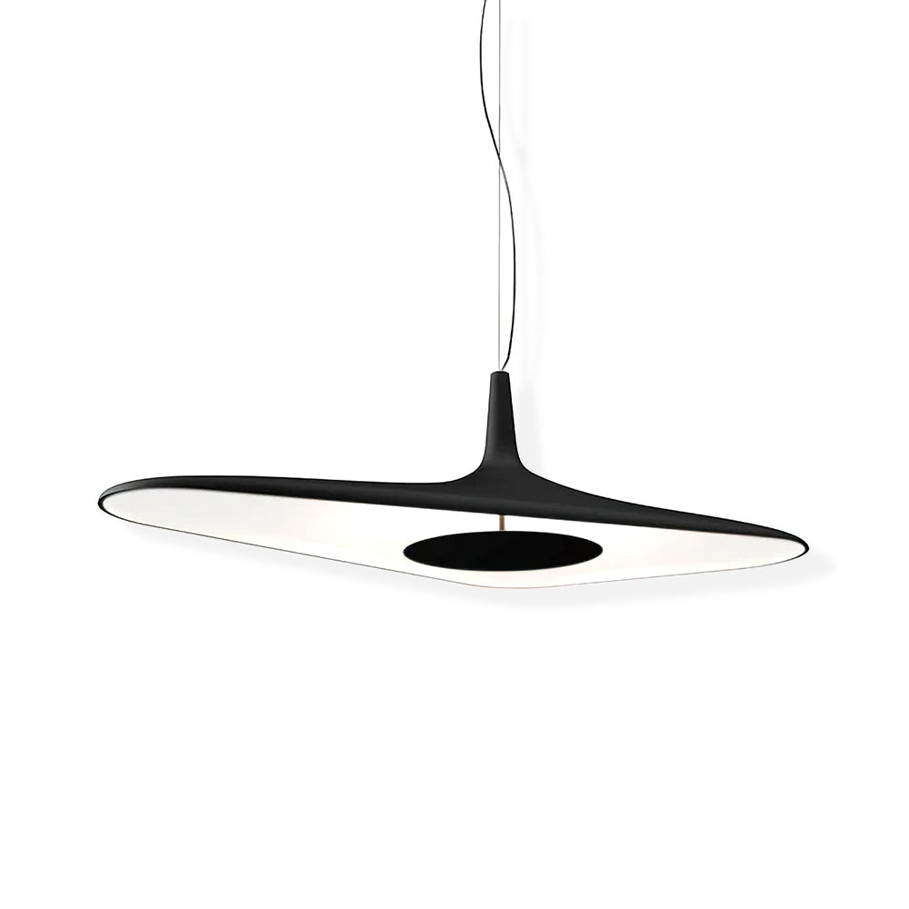 The Soleil Noir Pendant Lamp defies the laws of statics with its slender and aerial design, supported by a single cable. Its body thickness of 8-25 mm ensures barycentric balance, while providing discreet yet elegant lighting. This innovative lamp brings a touch of sophistication to any space.