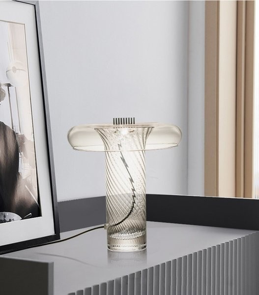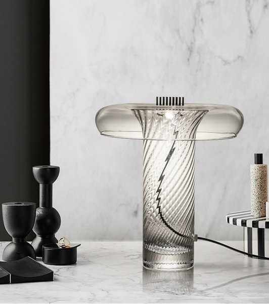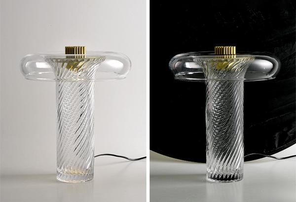 Stellar is a collection of unique glass lamps combining assorted vintage glass objects with advanced L.E.D light technology. Each lamp is made up of glass elements that have been carefully selected from thrift shops found around Marina and Iain's east London studio. Crystal items are selected by the pair for their refractive optical charm. Once chosen and arranged, glass elements are illuminated by an advanced LED light system which offers low energy consumption and is compact size. "For us, this project was about blending the charm of vintage crystal with a contemporary LED light technology - to produce an unexpected harmony."