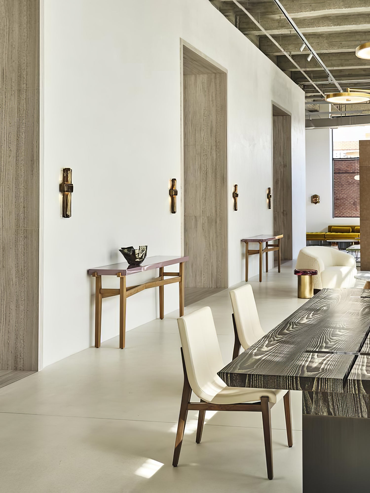 This modern take on a traditional torch, the wall lamp beautifully combines the boldness of black with the luminous clarity of glass. Surrounded by its sleek frame, the handcrafted glass is molded with elegant and gentle waves, providing a delicate touch to its cozy illumination. Discreetly embedded within the glass, the integrated LED emits a tranquil and welcoming radiance that bounces off the black surface.