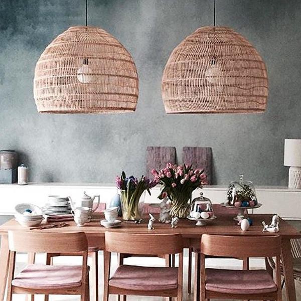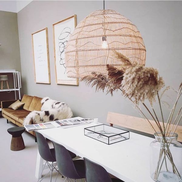 Hand woven wicker hanging lamp. This is the most popular lamp shade designed by HK Living. The wicker hanging lamp is cool, natural and big! This lamp has a home craft look that is so on trend right now and fits in perfectly with the contemporary Scandinavian interior style. The pendant light is big and makes a statement but its also light and airy because of the use of natural material. Lamp is organic shaped and not cookie cutter design.