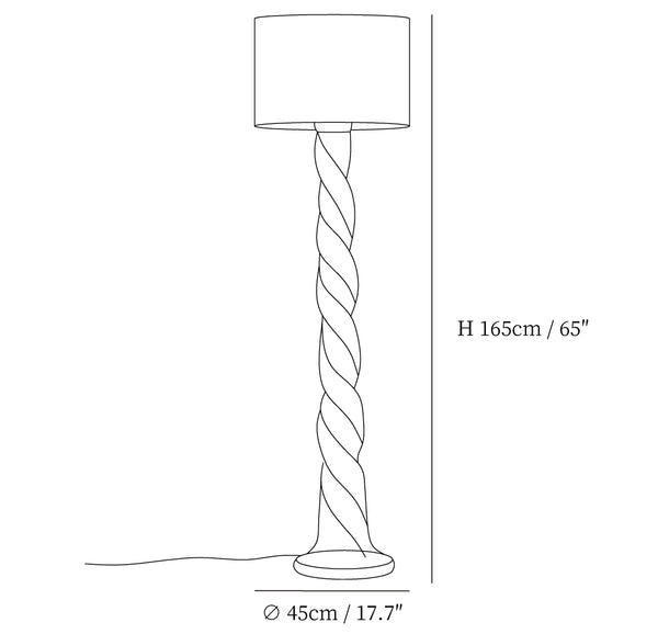 Light up your space with elegant whimsy when you display this twist-base floor lamp. Featuring a round base and twisting resin neck, topped with a woven drum shade. Plugs in to power on; compact fluorescent compatible.